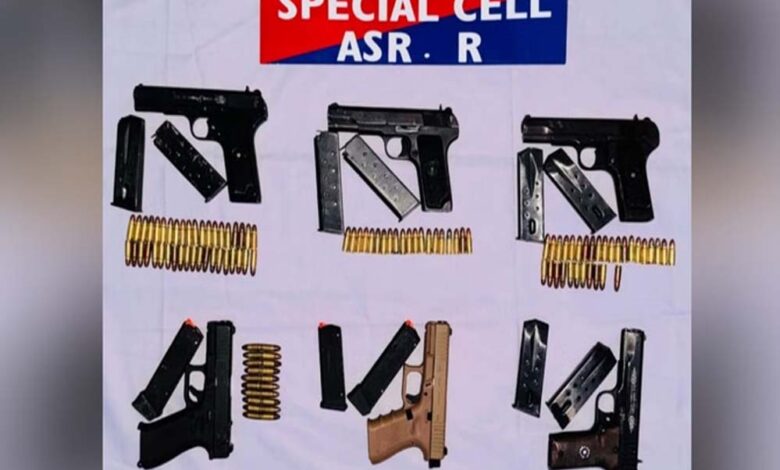 अमृतसर जिला देहाती पुलिस ने अंतरराष्ट्रीय हथियार तस्करी के नेटवर्क से संबंधित एक तस्कर को गिरफ्तार कर बड़ी संख्या में हथियार बरामद किए हैं। आरोपी का नाम अमरबीर सिंह उर्फ अमर, निवासी डेहरीवाल है। आरोपी के कब्जे से 6 पिस्तौल, 11 मैगजीन, .30 बोर के 91 कारतूस और 9 एमएम के 20 कारतूस बरामद किए गए हैं।