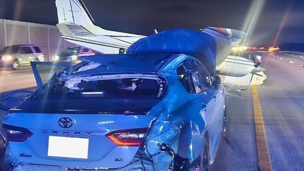 फ्लोरिडा हाइवे पर क्रैश लैंडिंग के दौरान विमान ने कार को मारी टक्कर, हादसे से मची अफरा-तफरी