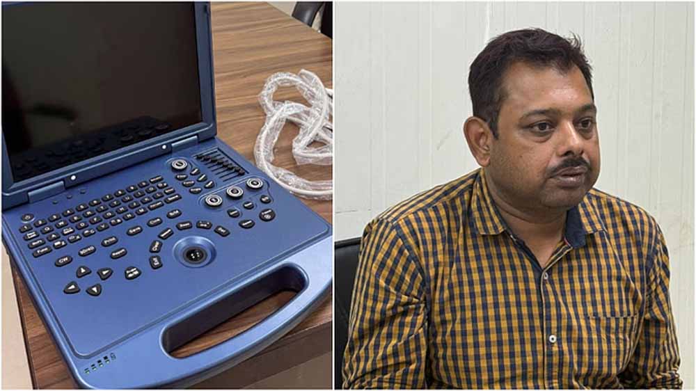 गर्भ में पल रहे शिशु का लिंग जांचने के लिए देशभर में प्रतिबंधित चीन निर्मित पोर्टेबल सोनोग्राफी मशीन बेचने वाले अंतरराज्यीय गिरोह का खुलासा हुआ है। पीसीपीएनडीटी (Pre-Conception and Pre-Natal Diagnostic Techniques) टीम ने गुरुवार को कोलकाता से आए सप्लायर को गिरफ्तार किया है। आरोपी के पास से एक पोर्टेबल मशीन भी बरामद की गई है, जिसकी कीमत करीब 7 से 10 लाख रुपये के बीच बताई जा रही है। गिरफ्तार सप्लायर की पहचान पश्चिम बंगाल के हुगली निवासी अमिताभ भादुरी (45) के रूप में हुई है। वह यह मशीन जयपुर में डिलीवर करने पहुंचा आया। पूछताछ में खुलासा हुआ है कि यह मशीन कोलकाता स्थित एक निजी हेल्थकेयर कंपनी के डॉक्टर आदित्य मुरारका से लेकर लाई गई थी।