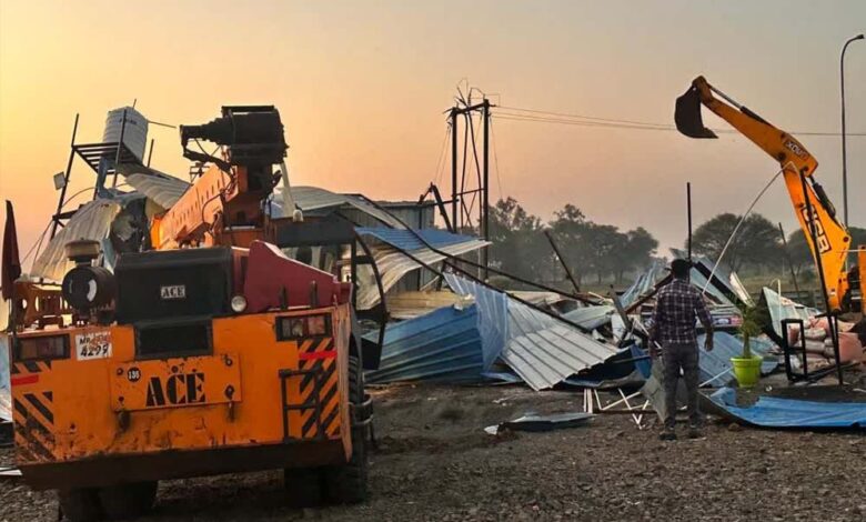 रतलाम में बुलडोजर एक्शन: दिल्ली-मुंबई एक्सप्रेसवे के पास अवैध ढाबों पर चला हथौड़ा, अतिक्रमण ढहा