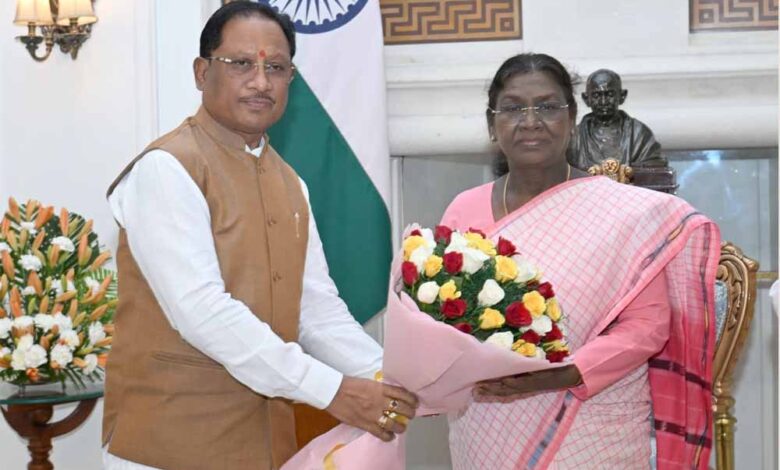 मुख्यमंत्री विष्णुदेव साय ने नई दिल्ली में राष्ट्रपति द्रौपदी मुर्मू से की सौजन्य भेंट