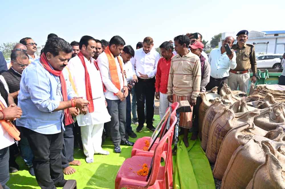 कबीरधाम जिले के बोड़ला विकासखंड स्थित महराजपुर धान उपार्जन केंद्र में आज उपमुख्यमंत्री श्री विजय शर्मा ने समर्थन मूल्य पर धान खरीदी महापर्व का विधिवत शुभारंभ किया। इस अवसर पर उन्होंने परम्परागत रूप से तौल यंत्रों की पूजा-अर्चना कर, किसानों का तिलक करते हुए श्रीफल भेंट किया। उन्होंने खरीदी प्रक्रिया की शुरुआत कर किसानों का उत्साहवर्धन किया।