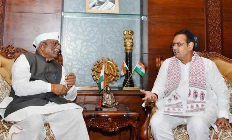 मुख्यमंत्री भजनलाल शर्मा ने सोमवार को राजभवन पहुंचकर राज्यपालहरिभाऊ बागडे से मुलाकात की। राज्यपाल बागडे से उन्होंने राजस्थान के  विकास से जुड़े मुद्दों पर चर्चा की। राज्यपाल बागडे से मुख्यमंत्री शर्मा की यह शिष्टाचार भेंट थी।