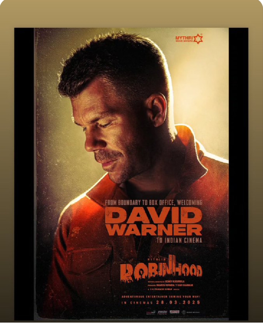 वॉर्नर ने अपने ऑफिशियल ट्विटर अकाउंट से इसकी जानकारी साझा की है कि वो तेलुगु फिल्म रावेनहुड में नजर आने वाले है, एक्टर नितिन फिल्म को डायरेक्ट कर रहे है श्रीलीला मुख्य भूमिका में नजर आने वाली है। डेविड वॉर्नर फिल्म को लेकर बहुत एक्साइटेड है जो कि 28 मार्च को सिनेमा घरों में आने वाली है।