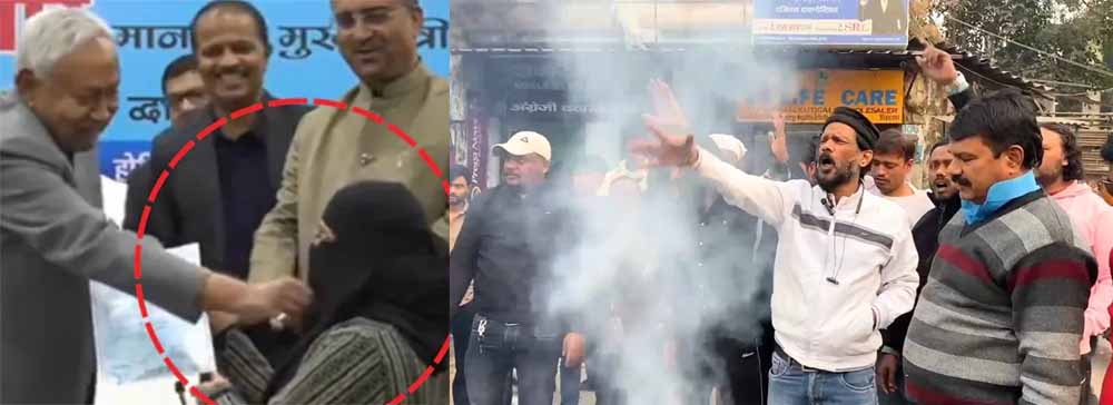 याद दिल दें कि बिहार के मुख्यमंत्री नीतीश कुमार के द्वारा नियुक्ति पत्र वितरण के दौरान कथित तौर पर एक महिला डॉक्टर के हिजाब हटाने वाले प्रकरण को लेकर झारखंड की राजधानी रांची में मुस्लिम युवा मंच ने जोरदार प्रदर्शन किया. संगठन के अध्यक्ष मोहम्मद शाहिद अय्यूबी के नेतृत्व में आक्रोशित युवाओं ने मुख्यमंत्री नीतीश कुमार का पुतला दहन कर कड़ा विरोध दर्ज कराया.