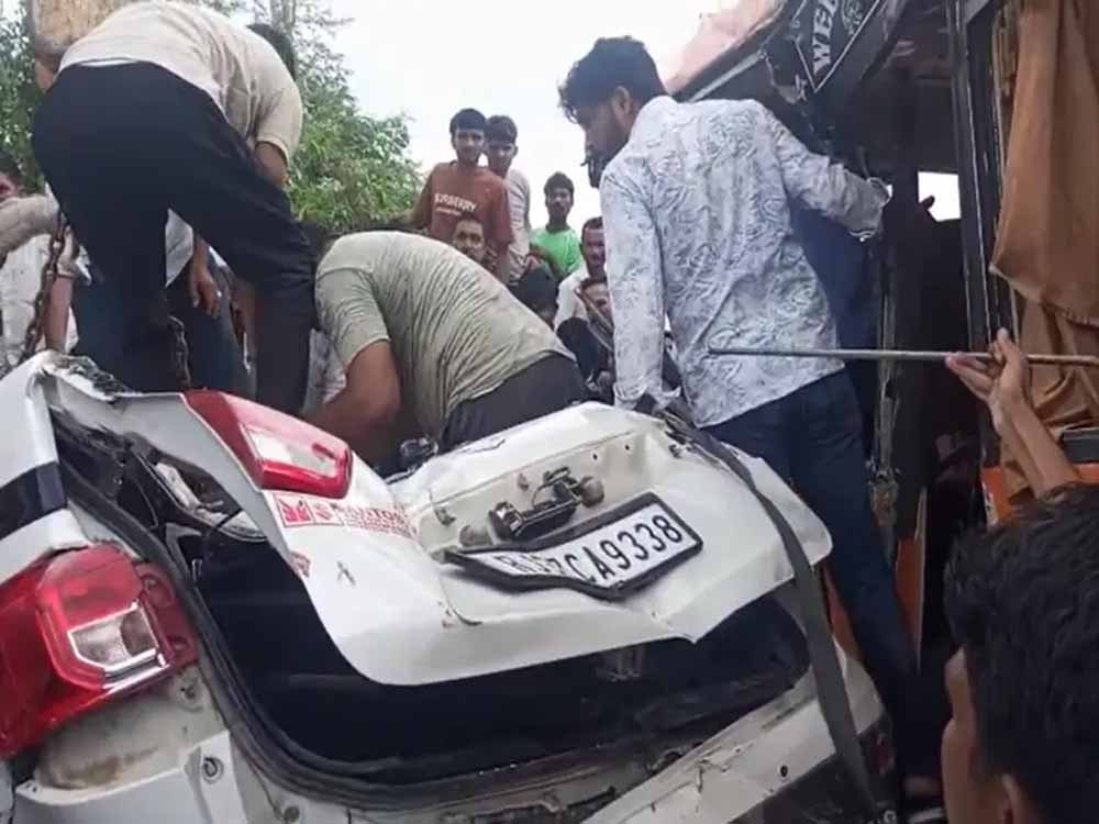 डीडवाना-कुचामन जिले के मौलासर बाईपास के पास शुक्रवार को एक निजी सवारी बस ब्रेजा कार के ऊपर पलट गई। बताया जा रहा है कि कार सवार डिकावा से मौलासर बावड़ी सगाई करने जा रहे थे, जबकि बस अजमेर से सुजानगढ़ जा रही थी।