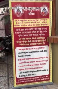 जानकारी के लिए बोर्ड में लिखा गया है कि ” यह परिसर प्रभु श्री लड्डू गोपाल का है, यहां लेन देन पूर्णतया आपके और प्रभु के बीच है।