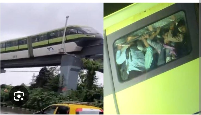 छमता से अधिक लोगों के सफर करने के कारण आई तकनीकी खराबी के कारण मोनो रेल मैसूर कॉलोनी के पास बंद पड़ गई।