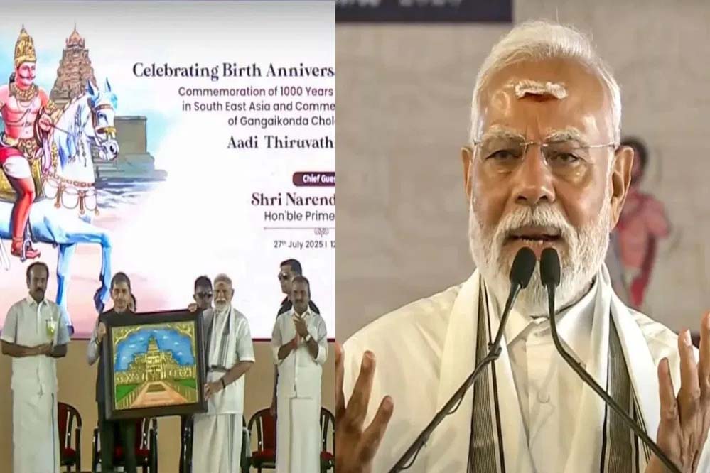 प्रधानमंत्री नरेंद्र मोदी ने कहा, 'इतिहासकार मानते हैं कि चोल साम्राज्य का दौर भारत के स्वर्णिम युगों में से एक था। चोल साम्राज्य ने भारत को लोकतंत्र की जननी कहने की परंपरा को भी आगे बढ़ाया। इतिहासकार लोकतंत्र के नाम पर ब्रिटेन के मैग्ना कार्टा की बात करते हैं। लेकिन कई सदियों पहले, चोल साम्राज्य में लोकतांत्रिक पद्धति से चुनाव होते थे। हम ऐसे कई राजाओं के बारे में सुनते हैं जो दूसरे स्थानों पर विजय प्राप्त करने के बाद सोना, चांदी या पशुधन लाते थे। लेकिन राजेंद्र चोल गंगाजल लेकर आए।'