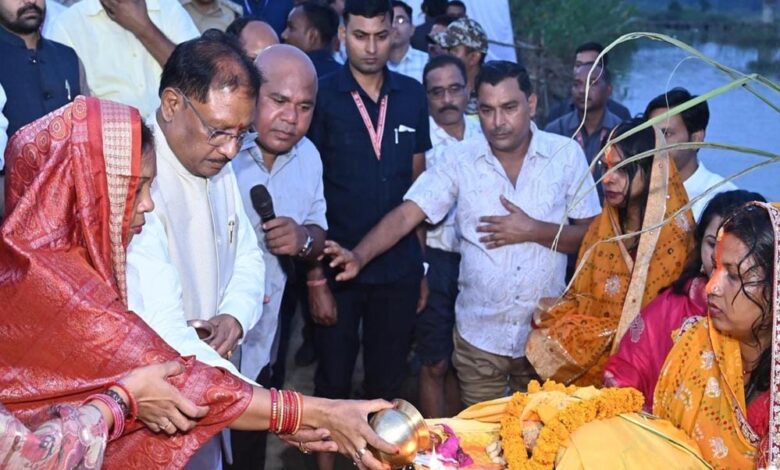 रायपुर : मुख्यमंत्री  साय ने जशपुर में दुलदुला छठ घाट में सूर्य को दिया अर्घ्य: प्रदेश की सुख-समृद्धि और खुशहाली की कामना की