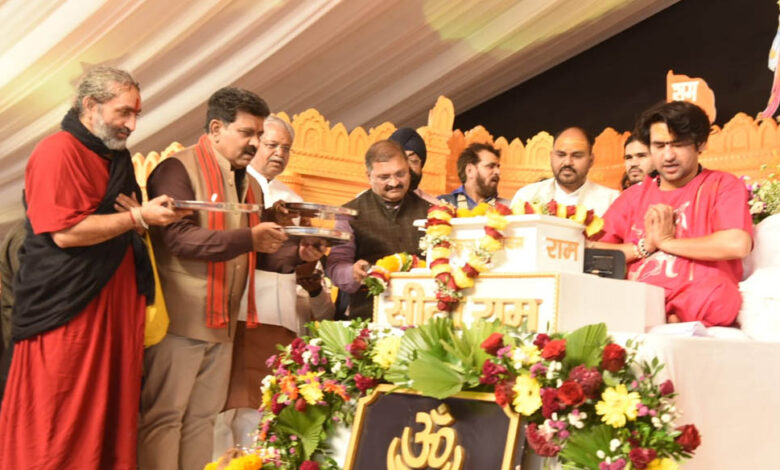 रायपुर : हनुमंत कथा के चौथे दिवस उप मुख्यमंत्री विजय शर्मा हुए शामिल, पं. धीरेंद्र शास्त्री से लिया आशीर्वाद