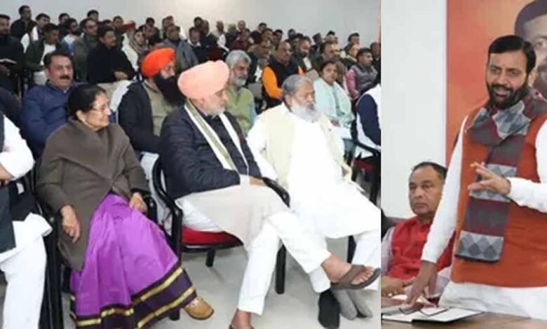 हरियाणा के पंचकूला स्थित बीजेपी के पंचकमल कार्यालय में मंगलवार को एक बड़ी संगठनात्मक बैठक हुई। इस दौरान नगर निगम चुनावों में जीत, 'वीबी जीरामजी' सम्मेलन और 'मन की बात' कार्यक्रम को लेकर महत्वपूर्ण फैसले लिए गए। बैठक में सीएम नायब सिंह सैनी, प्रदेश अध्यक्ष पंडित मोहनलाल बडौली और प्रदेश प्रभारी डाक्टर सतीश पूनिया ने एक-एक विषय को उपस्थित नेताओं के सामने बड़ी बारीकी से रखा।