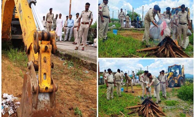 जप्त गांजा, नशीली इंजेक्शन और टेबलेट को एसपी की मौजूदगी में किया गया नष्ट